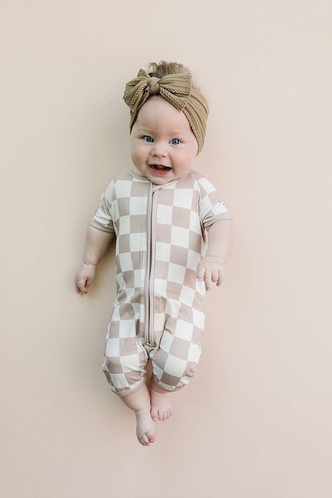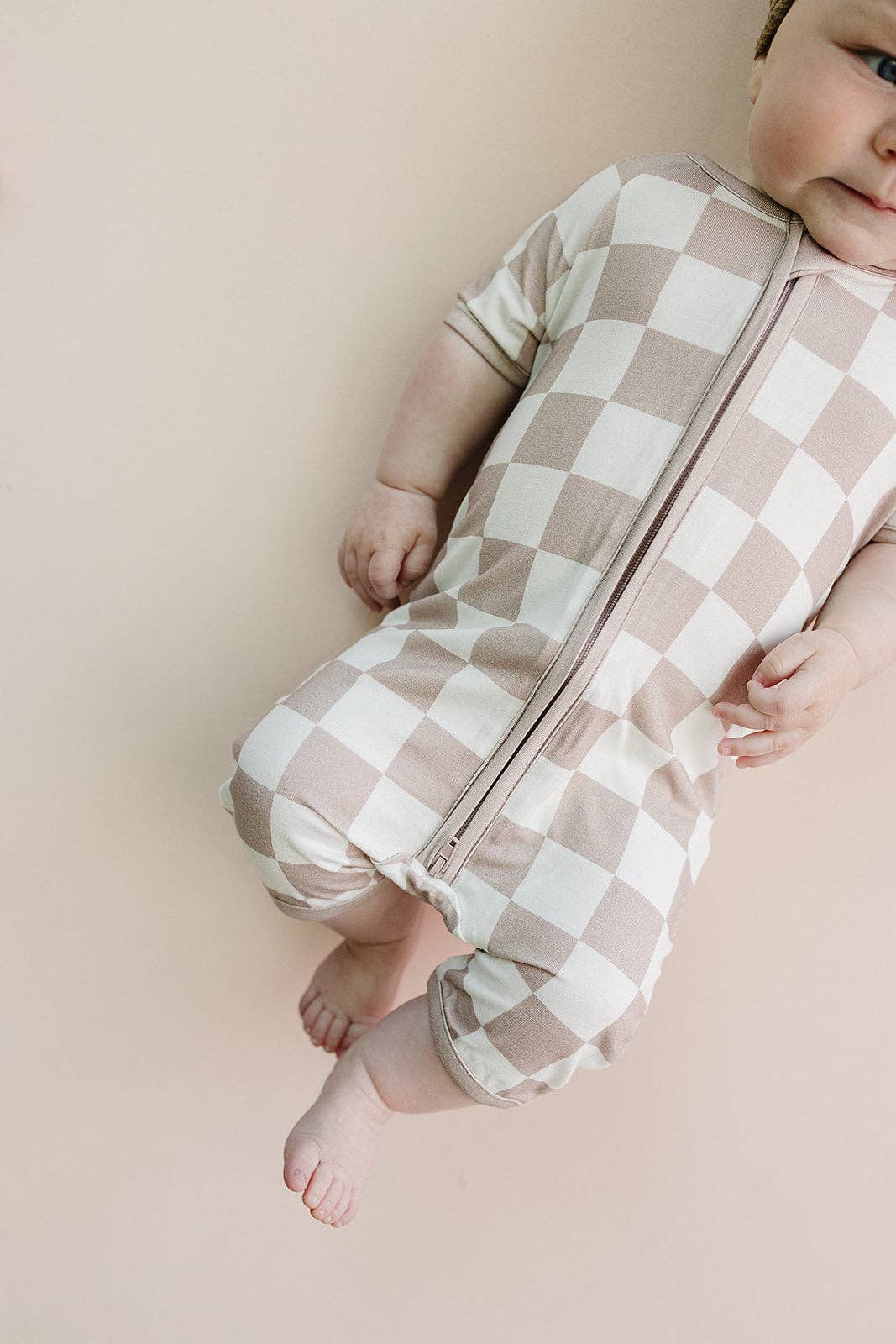 Baby Bamboo Shorty Romper | Latte Checkered