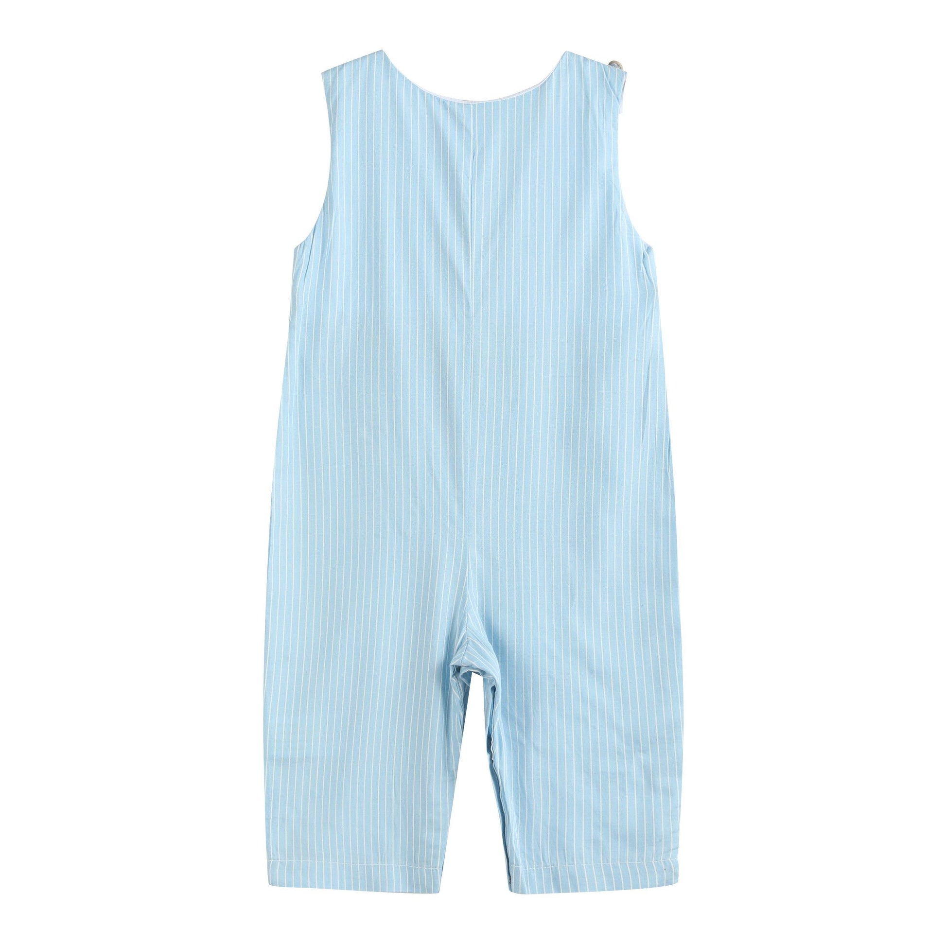 All aboard for cuteness! These Blue Gingham Train Smocked Overalls are perfect for your little conductor. Made from 100% cotton, the overalls feature a classic blue gingham pattern and a smocked panel with embroidered train and stars. Adjustable shoulder buttons ensure a comfortable fit, while snaps at the crotch make diaper changes quick and easy.
