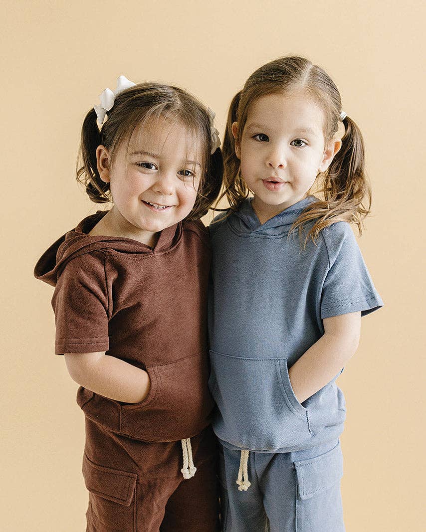 Bring a splash of color to their wardrobe with the Cargo Shorts Set in Blue. Made from soft, premium cotton fabric, this set offers all-day comfort and a breathable fit. The hoodie with a front pocket and the cargo shorts with convenient pockets make it both stylish and functional, ideal for active little ones. Available in 5 colors, this set is perfect for sibling matching, so your family can look effortlessly coordinated!
