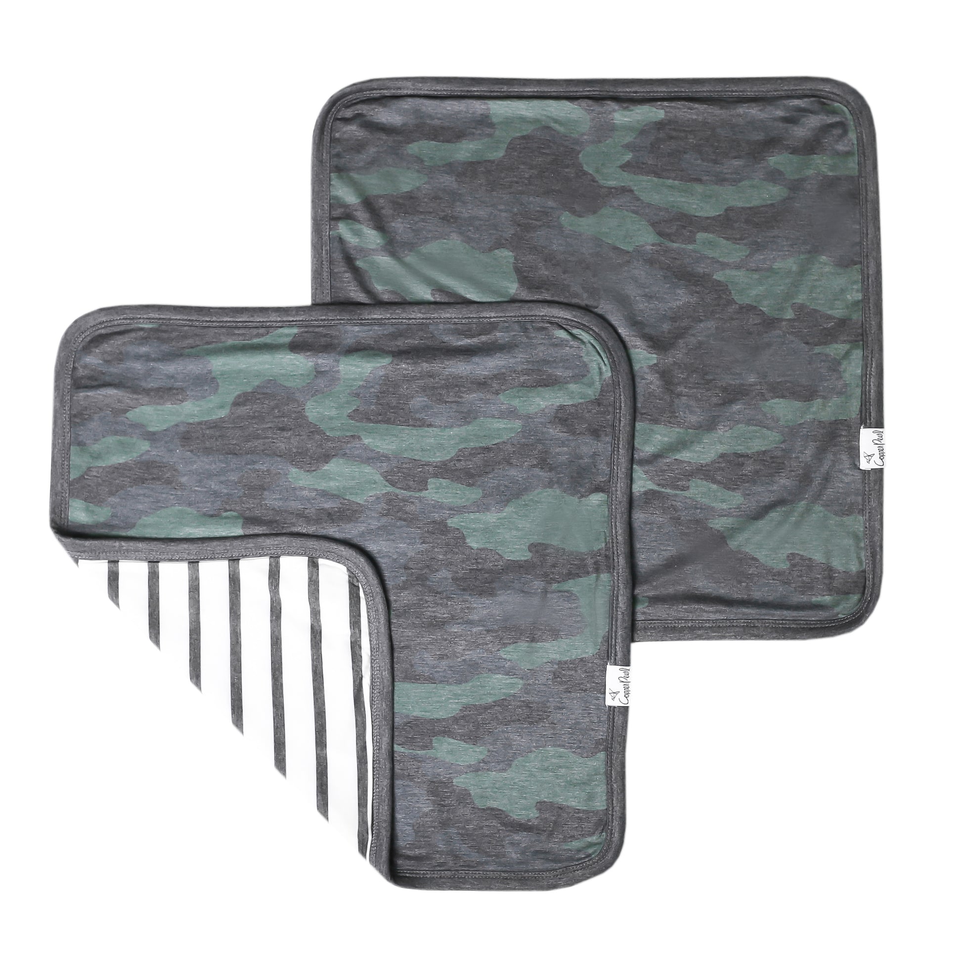 Unleash your child's inner adventurer with Hunter Lovey! This 2 piece set features a security blanket with camo and stripe patterns on each side. Keep your little one feeling safe and cozy while they explore the world around them. Perfect for playtime, naptime, and bedtime.