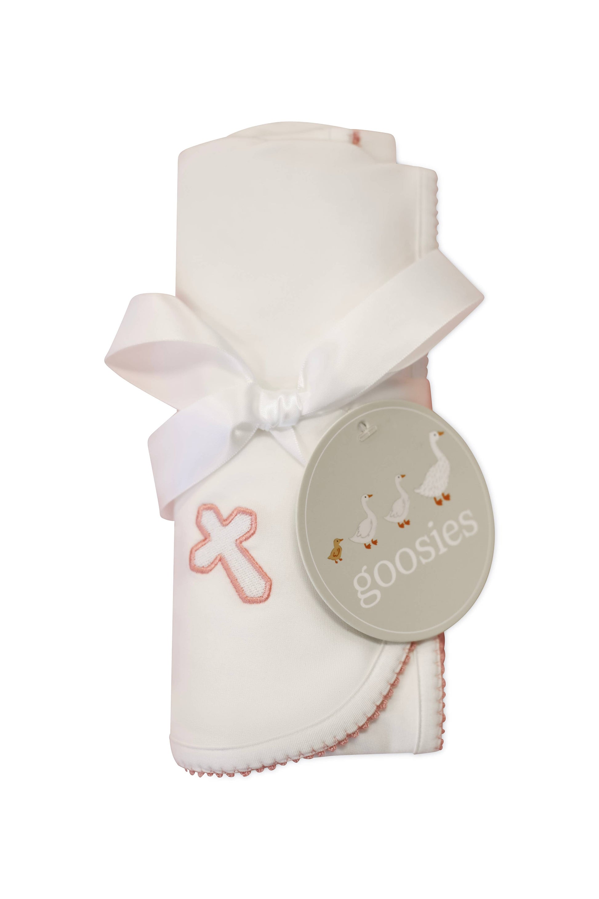 Soft, timeless, and made for the sweetest beginnings 🤍 This beautifully crafted blanket features a delicate embroidered detail, adding a gentle heirloom touch to an everyday essential. Finished with subtle picot trim and tied with a soft ribbon, it’s as giftable as it is practical.