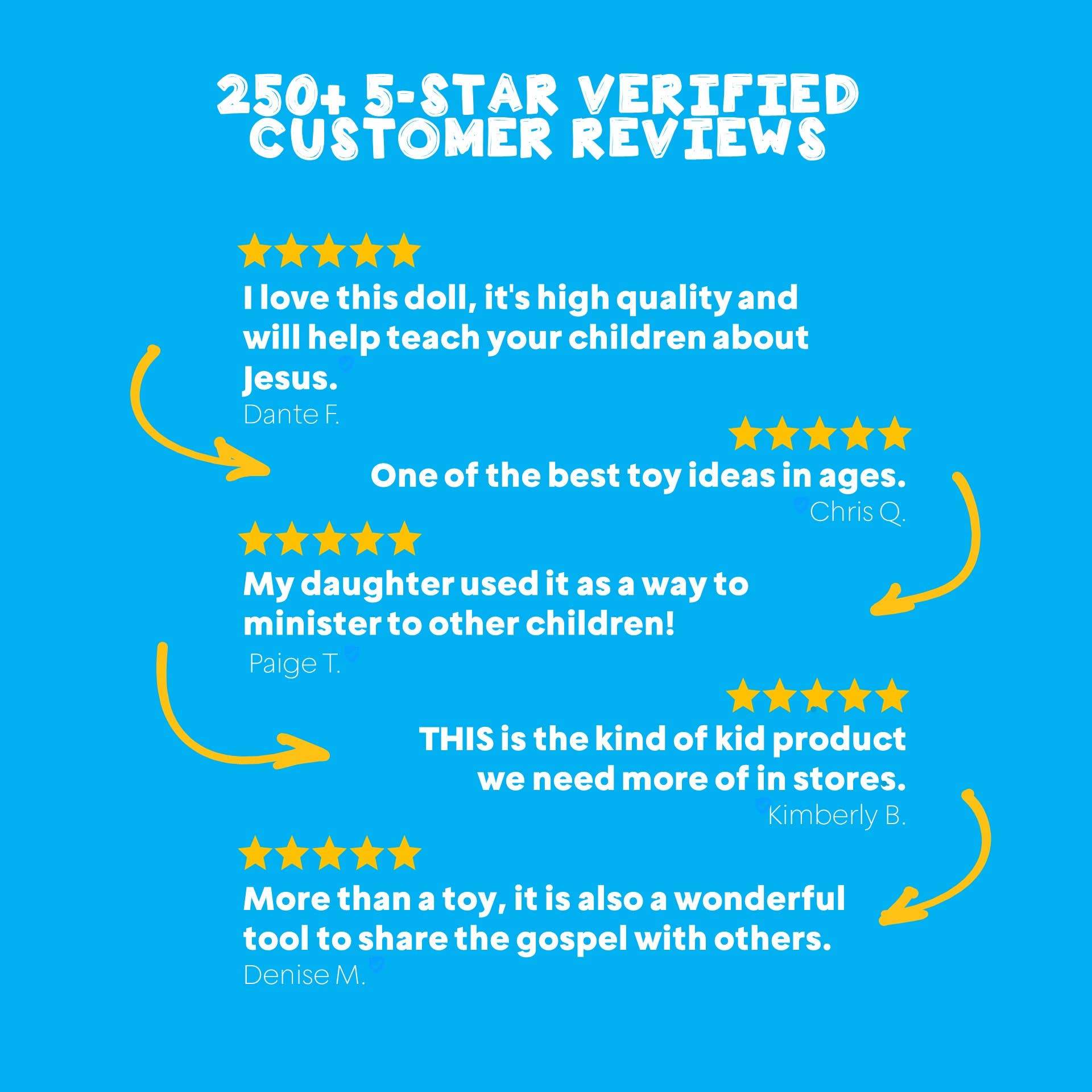 The Talking Jesus Doll is a beautiful 12" plush Jesus that speaks 10 phrases that Jesus said in the Bible. Jesus welcomes children with his outstretched arms, warm smile and a super-soft body. Children LOVE to squeeze his hand to make him talk. Parents and grandparents LOVE that their little ones are learning Jesus' important teachings from the Bible. Perfect for Christmas or for Christian Easter baskets. More than a toy, it opens up kids to Christ. Teach your kids before the World does.