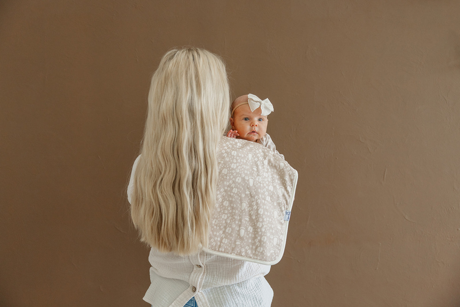 Introducing Timber Burp Cloths by Copper Pearl, the ideal choice for any parent! This 3-pack of oversized cloths features the playful design of animal tracks, making them both functional and visually appealing. Stay prepared and stylish with Timber Burp Cloths!